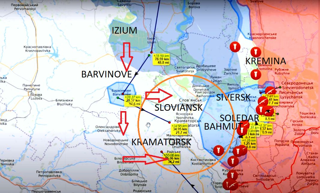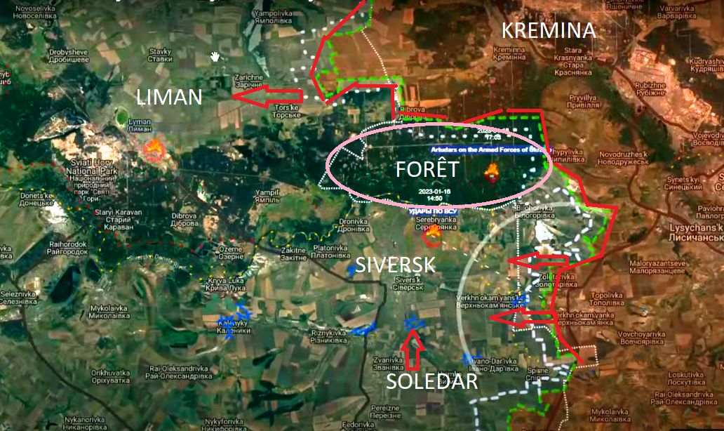 Nejnepříjemnějším důsledkem pro ukrajinskou armádu byla ztráta útočné iniciativy na jižním úseku fronty, tedy v kremelské oblasti Charkova. Útočné pozice zde byly rovněž redukovány a část jednotek byla poslána do Bachmutu. Na jihu byla Kremina přirozeně chráněna hustým lesem, který neumožňoval použití ukrajinské výzbroje. Ruské dělostřelectvo vytvořilo západně od Kreminy průlomy, kterými ruští pěšáci postupovali k Limanu. Deset kilometrů východně od Severska postupují Rusové ze směru od Zolotarivky a deset kilometrů jižně Rusové útočí od Soledaru. Severskou posádku a její síť opevnění systematicky "trhalo" ruské dělostřelectvo (mapa 4).