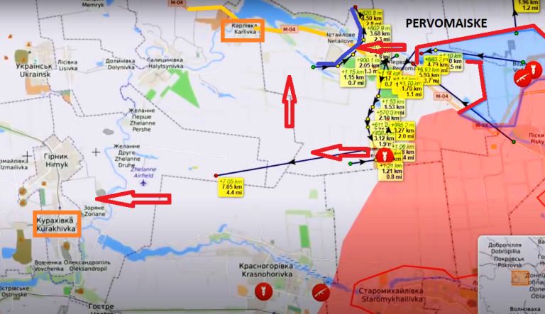 Jižně od Marijinky dosáhli Rusové linie vesnice Pobeda, kde mají Ukrajinci opevněný opěrný bod. Případný útok na tento opěrný bod, koordinovaný s prolomením ukrajinské obrany u Novomichajlovky ruskými jednotkami, by odřízl další zásobovací trasu, silnici Novomichajlovka - Katerinivka (mapa 5).