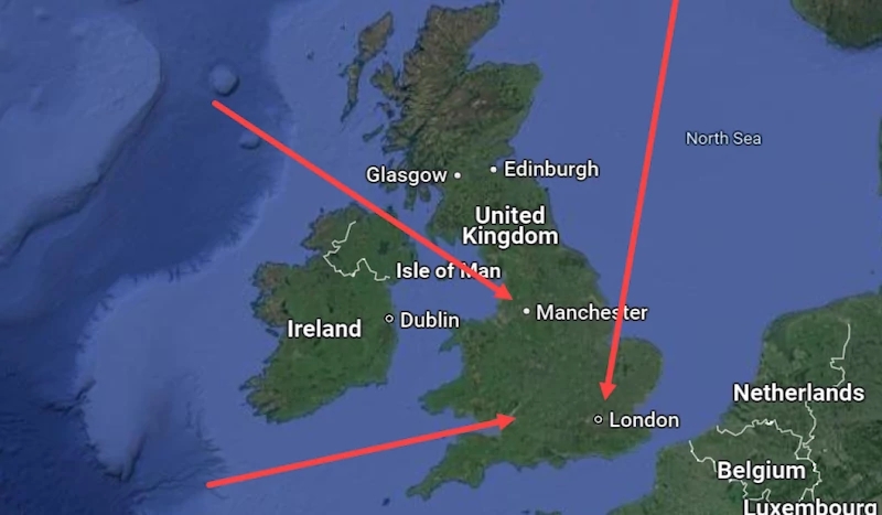 Všichni účastníci nové války přímo v Izraeli tentokrát ví a otevřeně říkají, že jde o válku na výdrž. A ta se nyní paradoxně rozhoduje na východní frontě v Ukrajině. Rusové jasně řekli, že pokud NATO zaútočí prakticky až na Moskvu zbraněmi dlouhého doletu vypálenými z Ukrajiny, pak začne přímá válka "Rusko-NATO". První krok udělali Rusové tím, že před několika dny poslali své nehlučné strategické ponorky na tři místa kolem Británie, aby ji krapet zchladili (či rozehřáli, jak se to vezme...). Obležení nebohých Britů vypadá na mapě takto.