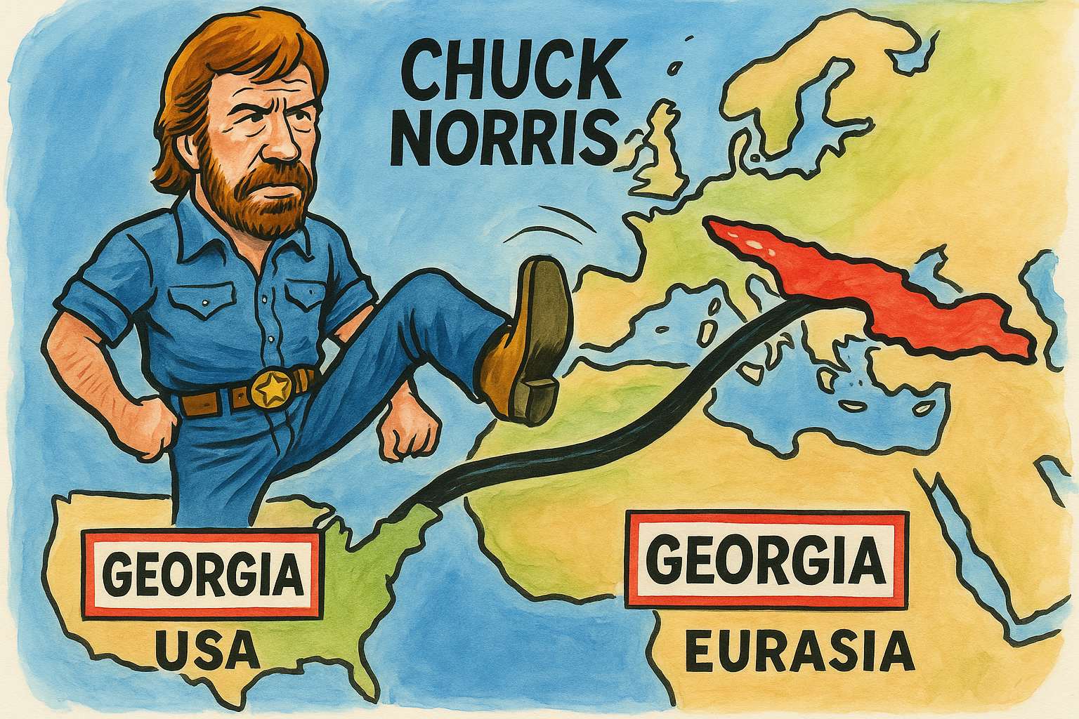 Chuck přiletěl osobně. Pronesl jediné: „Fyzika je doporučení. Ne zákon.“ A pak udělal to, co Chuck Norris dělá nejlépe: kopl do glóbu. Výsledkem bylo spojení obou Georgií prostřednictvím kvantového tunelu přes Grónsko a orbitální platformu Benjamina Netanjahua.