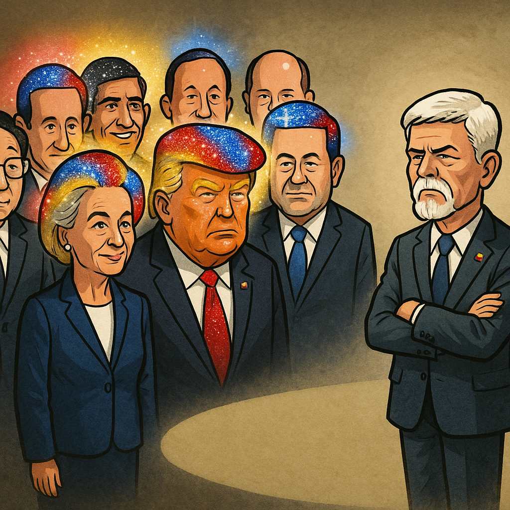 Petr Pavel, mírně ustrojený, zato velmi rozhodný, vstoupil do Oválné pracovny jako muž, který konečně pochopil smysl přehazovačky. Nešlo o barvy. Ani o Davidovu hvězdu. Nešlo dokonce ani o Izrael nebo USA. Šlo o vůli sloužit. A to nejlépe v dluhu.