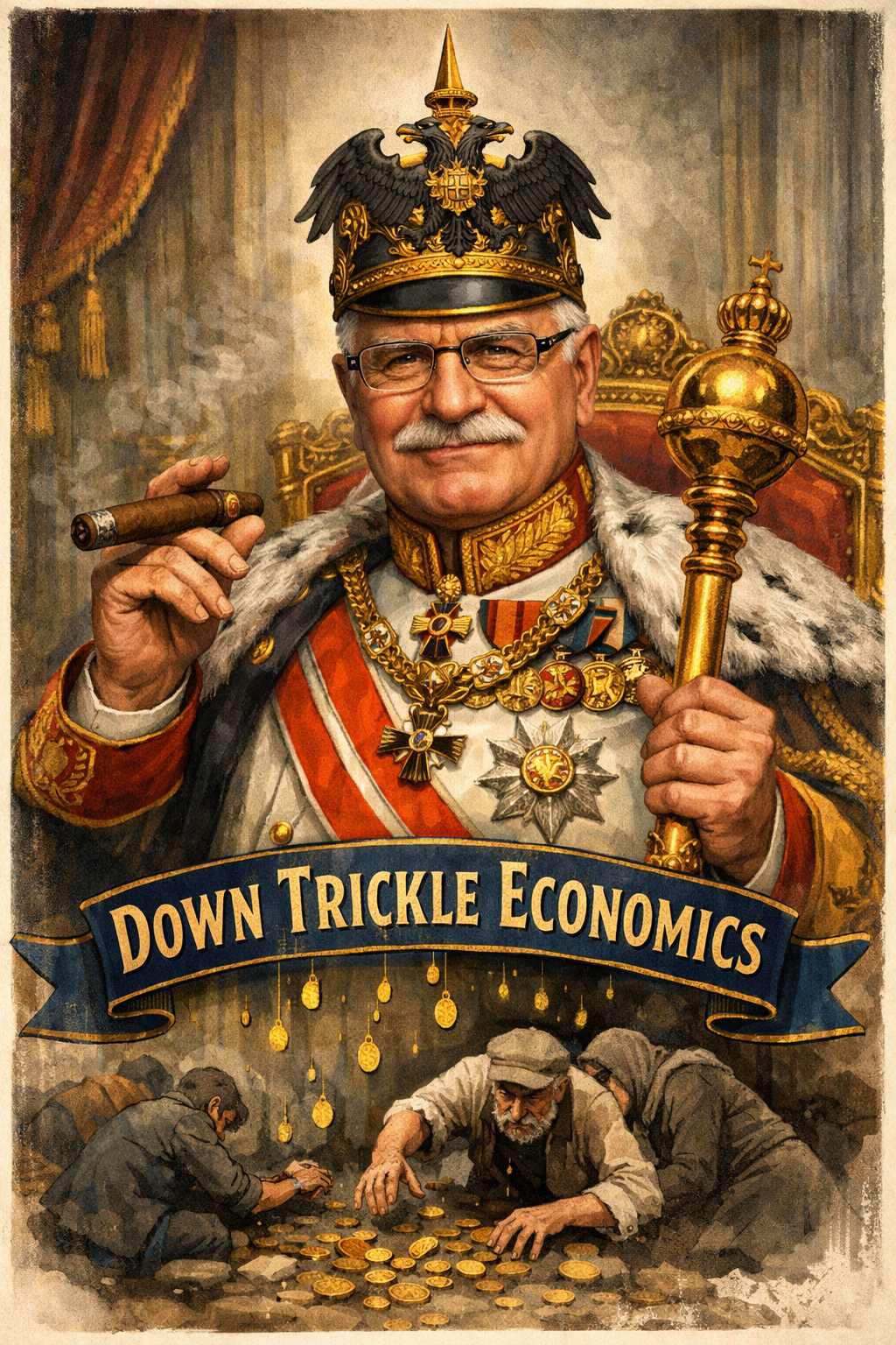 Víra v to, že bohatství a výhody „stečou shora dolů“, se objevuje v různých podobách znovu a znovu. Jednou má podobu říše, jindy strany, jindy trhu. Vždy však stojí na stejné naději, totiž že moc nahoře zajistí klid dole – alespoň pro ty, kteří se přihlásí včas.