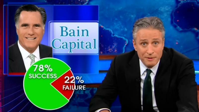Skončila oficiální část americké prezidentské kampaně a známá TV show liberálního Jona Stewarta si vzala na paškál demagogii Mitta Romneyho. Jeho poslední slova opakovala klasickou neoliberální mantru, že stát je špatný hospodář, protože prý ze státem podporovaných podniků zbankrotovala celá polovina. Čísla na obrázcích zveřejněných ve Stewartově show ovšem ukazují něco jiného. Stát zaznamenal bankroty pouze u 8 % firem, kam šly vládní dotace. Zato oficiální výsledek Romneyho makléřské firmy Bain Capital je mnohem méně povzbudivý. Z podniků, které osobně vedl Romney v průběhu osmi let, zkrachovalo v průměru 22 % z nich. Že by měl státní kapitalismus zelenou i v USA?
