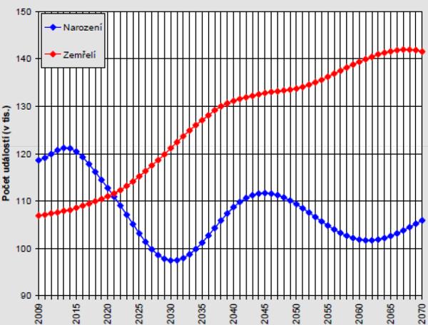 Racionální přístup k uprchlíkům znamená, že budeme hledat věcné argumenty, proč je máme nebo nemáme přijmout. Jistěže nemůže jít jen o lidi, které jsme bombardováním a podporou terorismu násilím vyhnali z jejich domovů, a kteří nás z těchto naprosto zásadních důvodů také nenávidí. Ptejme se však, zda nepotřebujeme normální imigraci, abychom prostě nevyhynuli. První tabulka ukazuje tento důvod podle ukazatelů z roku 2010, viz tato studie.Zdá se, že Česko potřebuje ročně kolem 20 tis. imigrantů, abychom nevymřeli. A jde také o průměrný věk. Česká populace nejen že nemá děti, ale velice rychlým tempem také stárne. Posun křivky doprava znamená, že přibývá průměrný věk, kdy je již biologicky obtížné mít děti. A někdo děti mít musí, protože psi v domácnostech to v Česku nevytrhnou. Neoliberalismus nás celkově ožebračil a nelze předpokládat, že se budeme mít lépe v příštích letech. Báječná léta zažívá v tomto systému pouhé jedno procento obyvatel (Báječná léta jednoho procenta). Navíc Západ začal regionální války o suroviny a o vliv, které musí někdo zaplatit. A nejsou to jen uprchlíci, kdo platí, my jsme ničeni také. Takže dětí v ožebračeném Česku přibývat přirozeným způsobem asi nebude, protože je lacinější mít psa nebo kočku. Nyní se podívejte na tři prognózy vývoje pro budoucí léta. Červená čára ukazuje, kdy začneme rychlým tempem vymírat při horším scénáři přírůstku obyvatel. V této době už budou v Česku převažovat senioři ve vyšším věku, na jejichž důchod nebude mít kdo dělat. A jejich důchod bude v případě dalšího vítězného tažení neoliberalismu asi už úplně vykradený. Stejný graf dole ukazuje rozdíl mezi přírůstkem a úmrtností v nejbližších 50 letech. Rozdílu obou křivek jasně naznačuje, že imigraci potřebujeme. |