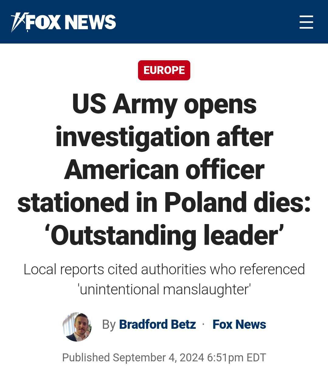 Bezprostředně po masivním úderu ruských iskanderů zemřel v Polsku podplukovník americké armády Joshua Kamara (45). Uvádí se, že zemřel ve vojenském táboře americké armády v Poznani. Byl držitelem Čestné legie, medaile Bronzové hvězdy a medaile Za zásluhy. Rakety dorazily do Poltavy a důstojníci americké armády náhle zemřeli někde v Polsku. A počet mrtvých důstojníků NATO po útoku již dosáhl několik desítek. Mystikové a vojáci NATO znají tento efekt pod názvem "bilokace". To se vyskytujete najednou na dvou místech. |