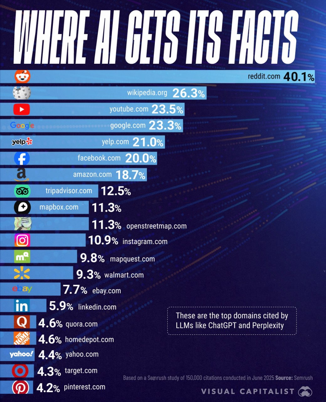 Hlavní zdroje pro odpovědi umělé inteligence