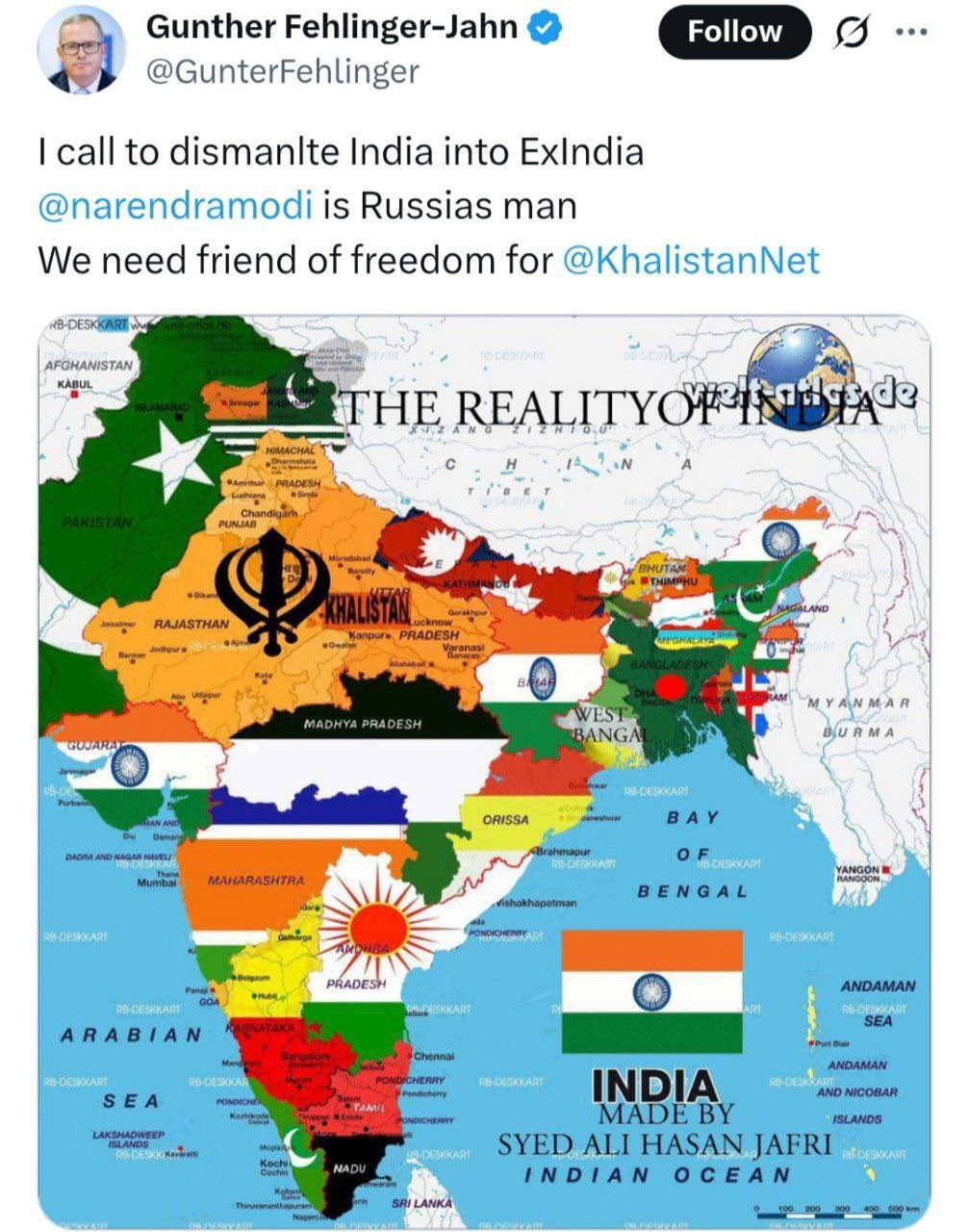 Předseda Výboru NATO pro rozšíření říká, že je třeba Indii rozdělit na části, protože Modi je ruský agent. Jahnův účet na X byl v Indii zablokován. Triumvirát "Modi-Putin-Xi" nyní upečený v Pekingu asi KoZu skutečně vystrašil. |