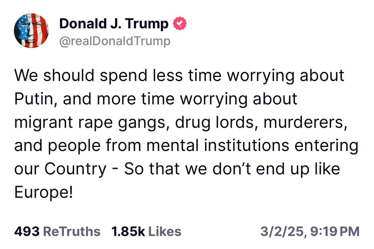 V lednu 2025 se stal prezidentem USA Donald Trump a zahájil vlastní Perestrojku, tažení proti deep state, proces očisty americké společnosti od skrytých finančních a mocenských struktur. To vyvolalo nadšená očekávání velké části obyvatelstva a zděšení dosavadního amerického establishmentu. Proces znamená nejen ohrožení jeho mocenských pozic, ale i abruptní přehodnocení dosavadního nepřítele na přítele a spojení s ním. (Disput)