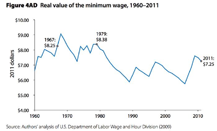 Neoliberalismus v zájmu jednoho procenta se o chudé rodiny starat nebude, jsou takzvaně "líní". V USA je to vidět na degradaci sociálních služeb, a podobně je tomu i u nás. Klíčovým ukazatelem je trvalá stagnace a v posledních dvou dekádách neoliberalismu i zásadní propad minimální mzdy, kterou vidíte v tabulce.