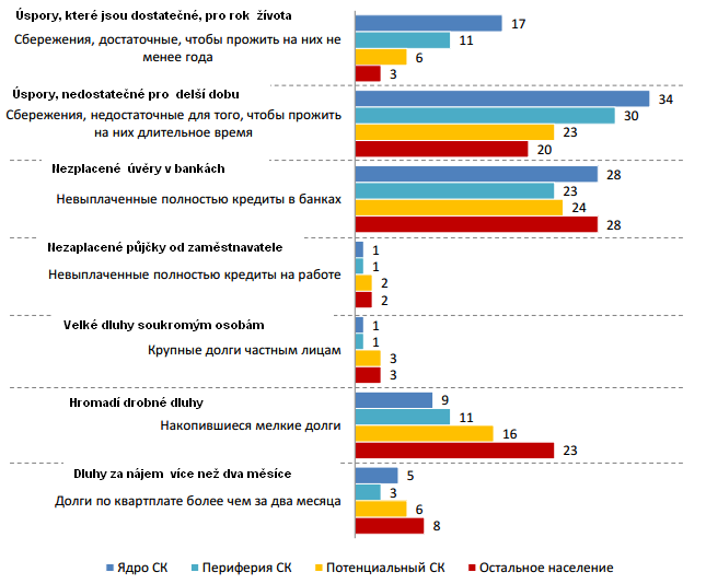 Nejvýznamnější negativní dopady krize vidí ST v poklesu sociální péče a v růstu cen. Došlo ke snížení používání placených sociálních služeb, a nakonec byla i nucená aktivita všech forem další pracovních možností. Došlo i na zahrádky a na samozásobitelskou aktivitu. Obecně negativní dopad krize na SK byl menší, než se čekalo. Situace se v posledním roce krize zhoršila, dominuje stále řešení vlastními silami a používá se racionální strategie adaptace.