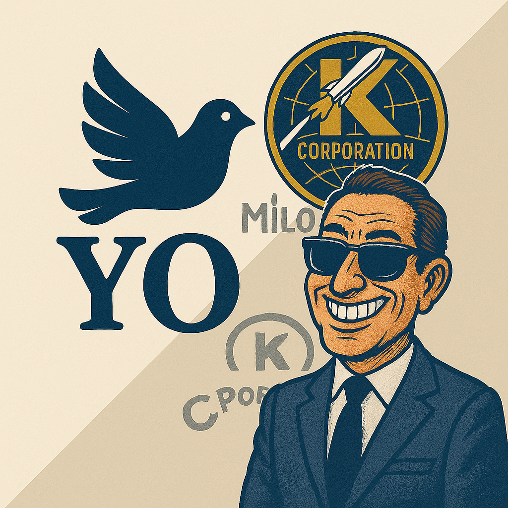 Míla Mildenburger, emisar s pověřením podepsaným osobně Trumpem (perem z kolekce „Make Deals Great Again“), přiletěl do Kyjeva s kufříkem plným brožur, kde byly slova jako „ekonomická transformace“, „partnerství pro mír“ a „dvacetiletá návratnost“ napsána fontem Comic Sans. Byl to potomek slavné dynastie podnikatelů M&M Enterprises, známé z dob Vietnamské války, kdy jejich nejziskovější produkt byla židle pro ztracené generály a ztracené účtenky pro audit Kongresu. Korporace 🏭𝕂🏭, kterou dnes Mildenberger zastupoval, byla přímým nástupcem této tradice — jen dnes se místo munice obchodovalo s informačními balíčky, demokracií, hnojivem a právy na duhový Instagram v rámci NATO.