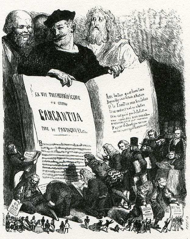 Jednoho dne jsem si v Seuilly odřel zadnici o list z jedněch mizerných Clementin. Ulovil jsem si takovou rhagadii a hemeroidy, že ubohá ďoura mé klášterní ohrady byla z toho celá rozkejhaná. ...Pro pána Jána, to byl zřejmý trest boha mstícího hřích, jehož jste se dopustil, pokakav tyto svaté knihy, jež jste měl líbat a uctívat, ba uctívat latrií nebo alespoň hyperdulií.