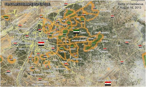 Západ na ně kašle, po smrti "bez Asada" už ztratili propagandistickou hodnotu. Roční výročí jejich smrti už žádná západní média nepřipomněla, není co oslavovat. Vyšetřovat se nebude, vše nasvědčuje tomu, že útok provedli samotní povstalci. Vyšetřování skočilo, zapomeňte. A nyní k mapě bojů.