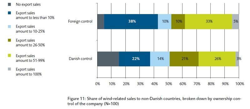 Poslední graf ukazuje, že jak investice do dánských firem, tak i vlastní dánské vlastnictví je vysoce ziskové, protože většina firem svou produkci exportuje v průměru z asi 20 %.