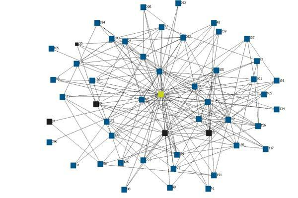 Černé tečky znamenají, že firmy kooperují pouze s centrálními institucemi, a jinak jsou ve své firemní politice zcela nezávislé. Modré zasíťování tedy ukazuje jak složitost vztahů, tak i vznik nového monopolu.