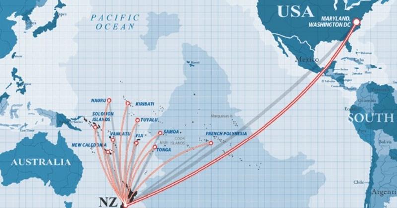 Začněme odhalením listu New Zealand Herald a nezávislého US-deníku The Intercept, kde působí nejlepší američtí investigativní žurnalisté. Výsledkem jejich úsilí je článek Snowden GCSB revelations. Analýza ukazuje, jak systém globálního odposlechu NSA nazvaný Xkeyscore funguje jako vysavač všech internetových informací, které jdou od nezávislých ostrovů v Pacifiku. K tomu náš článek Britský fízlovací program Tempora má orwellovský charakter. Jak to funguje v případě Xkeyscore, to ukazuje tato mapa.