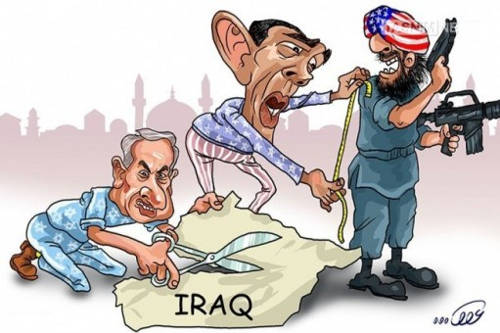 Podobným způsobem byl de facto válkou rozdělen Irák. Ale tam místní kmeny a náboženské frakce a teroristy zastupují světové ropné společnosti. Výsledek je podobný, asi 1,5 miliónu mrtvých.