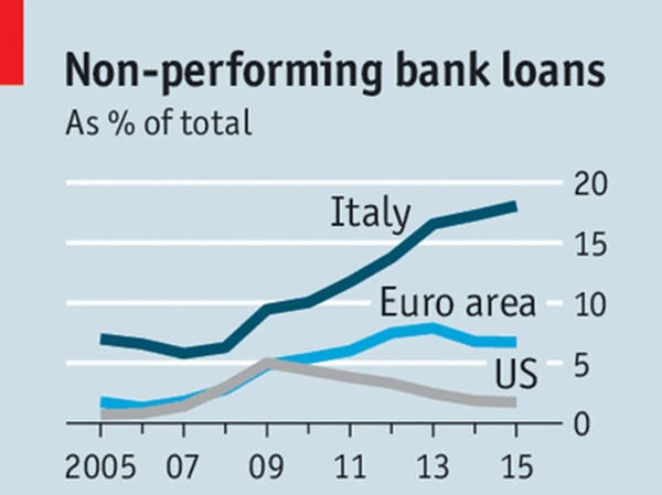 Makroekonomická situace se za posledních 10 let prudce zhoršila. Stát na jedné straně šetří, dluh na druhé straně ale roste – přes veškerou podporu ze strany ECB díky nízkým úrokovým sazbám. Státní a veřejný dluh již překročil hranici 132,4 % HDP. Bankovní sektor je v rozkladu, až pětina úvěrů hrozí nesplácením. Itálie zažívá to, co zažívá již dvě desetiletí Japonsko. Polyká hořkou pilulku ztraceného desetiletí. Připojení k euru a opuštění liry rozhodně Itálii ekonomicky nepozvedlo. Rostou dluhy, nezaměstnanost a klesá výroba a HDP. Pro doplnění - rok 2014 propad o 0,4 %, rok 2015 růst o 0,6 %. Očekávaná skutečnost roku 2016 je růst 0,2 %, což je na hranici statistické chyby.