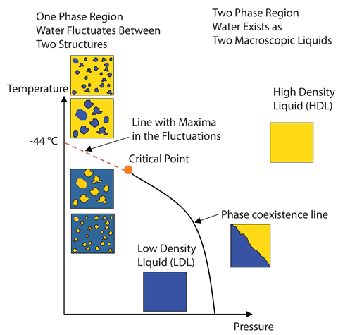 Aby toho nebylo dost, vynořila se totiž znova otázka, jestli skutečně víme, co vlastně voda je a co dělá. Já vím, že to zní divně, každý z nás starších dělal někdy sněhuláka a navštívil parní saunu. Ono jde ale spíš o chování vody v extrémních podmínkách, i když dosažitelných jak na Zemi v laboratoři, tak na jiných planetách. Z historie víme, že Wilhelm Conrad Röntgen přišel jako první s teorií, že jsou vlastně dvě vody. Tedy molekulárně. John Russo z italské university Sapienza na matematických modelech dokazuje, že v podmínkách superchlazení se začne voda chovat „nejistě“, a to v rozmezí 235 až 150 °K. Russo předpokládá, že v této mezifázi by se mohlo podařit rozdělit tyto dvě různé formy vody. Jako každá teorie, i tato má své oponenty. Ale pokusy jsou prováděny a tak se možná brzy rozhodne.