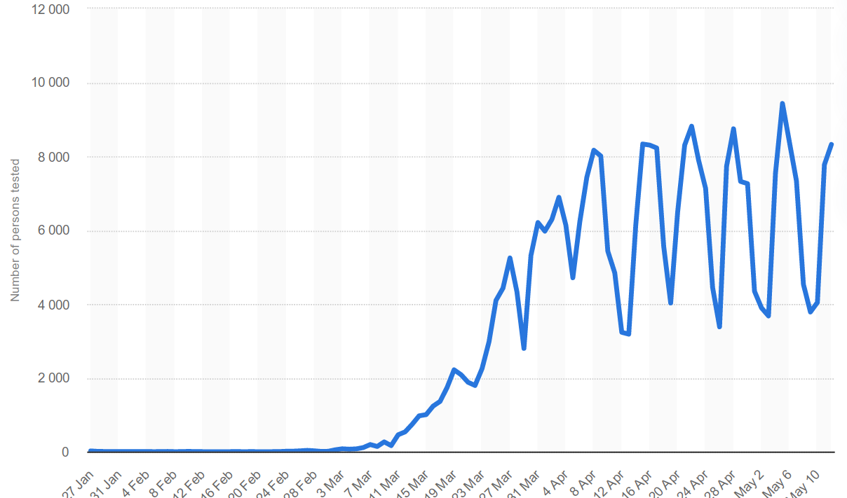 Korporátky do nekonečna opakují mantru nakažených covidem, kterou zpestřují mediální kampaní proti Číně. Tento mediální růženec už lidi otravuje, ale hlavně neříká vůbec nic o zajímavých okolnostech spojených se šířením této nemoci. Nesleduji presstituty zcela pravidelně, protože život je přece jen i o jiných věcech než o lžích fakturovaných a fabrikovaných na mocenskou objednávku. Ale asi před dvěma měsíci jsem si dal práci a podle statistik jsem zjišťoval, zda se u nás vůbec kdy plošně testovalo na covid-19. Vyrábíme polotovary pro Říši míru, takže je jasné, že jsme si museli dovést testovací kity ze zemí jako komunistická Čína, oligarchické Rusko či perská teokracie Írán. Tyto kapitalismem nakažené země prodávají humanitární produkty za nelidskou cenu podobnou Západu. Takže bylo čím testovat, ale podle mezinárodních statistik k tomu v Česku nedošlo. Pokud vím, náš mainstream k tomu nic nenapsal, tak proč? Podívejte se na graf testování v kritickém období šíření nemoci.