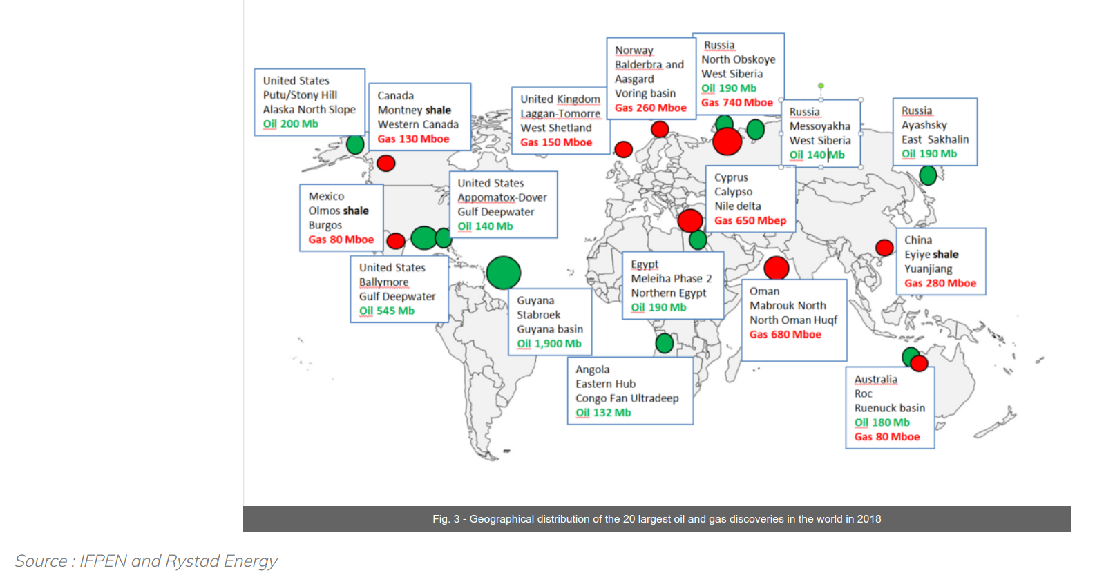 Odpověď je jednoduchá a zajímavá. Neoliberální hoši, je konečná, zavíráme surovinový krám. Po dvou stoletích planetárního a imperiálního plundrování hlavní světové korporace nemají kde loupit suroviny a zdroje. Začněme ropou a zemním plynem, protože o něm jsme psali minule. Podívejte se na rozložení nových nalezišť ropy a plynu v roce 2018.