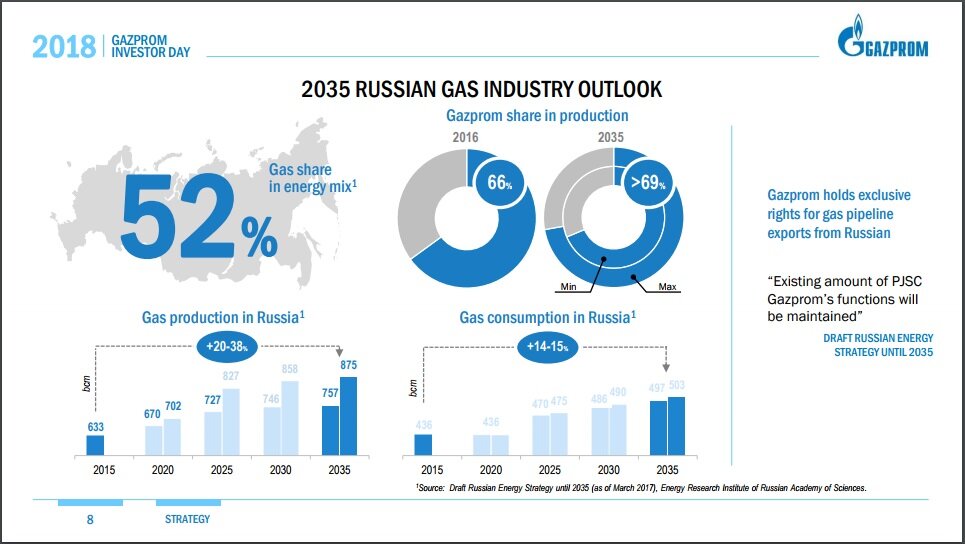 Takže Rusové jsou v pohodě. Plynovody do Číny už běží naplno (Power of Siberia), připravuje se osa na Japonsko. Evropa je plně pokrytá ze čtyř směrů (Jižní proud, Severní proud, Jamal přes Bělorusko, plynovod přes Ukrajinu). Nyní se podívejme na ekonomický výhled Gazpromu, jestli by tam nešlo něco ukořistit.