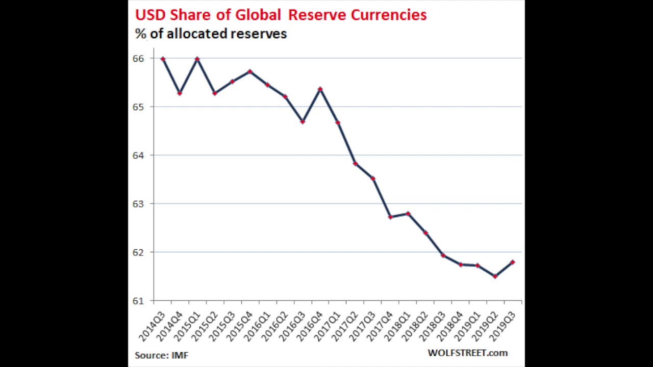 Nyní je jasné, že podíl dolaru na obchodu je jen zdánlivý, protože dolary se obchodují hlavně dluhy. Dolarového koně nekrmí normální ekonomický oves a seno, ale virtuální derivátový trh, takže nemá šanci přežít. O tom je článek Pánové, zavíráme krám, aneb Helikoptérové peníze.