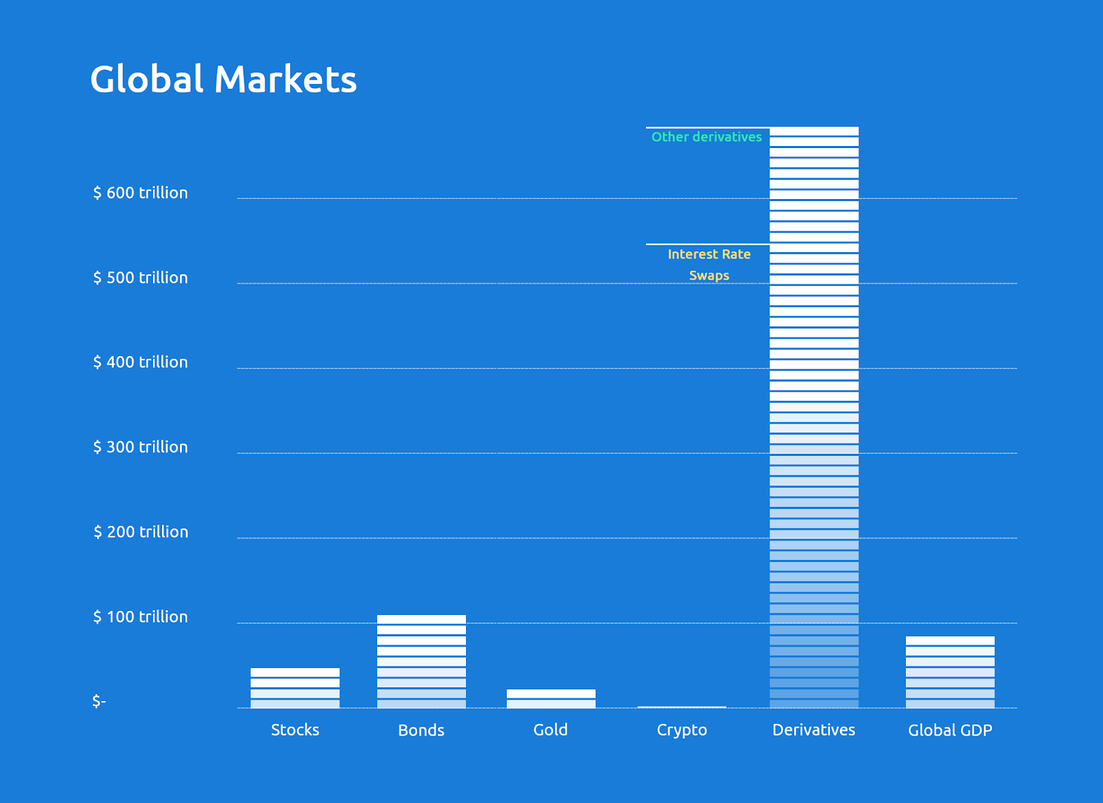 Jak sami vidíte, na světě se vyprodukuje zhruba 10krát méně ekonomických hodnot v rámci světového HDP, než je derivátový trh. K tomu viz grafy v článcích:
