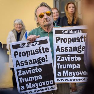 U nás v české dolině to nejde rychleji. Na malé demonstraci před britskou ambasádou se sešla společnost napříč politickým spektrem. Demonstrovali jsme proti procesu vydání Juliána z anglického vězení Američanům. A samozřejmě také za jeho propuštění.