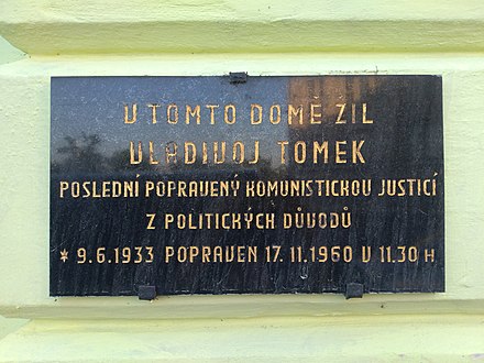 Podle ÚDV bylo v průběhu komunistického režimu v Československu popraveno pro politické trestné činy 248 osob (247 mužů a Milada Horáková). Do vězení bylo z politických důvodů odsouzeno přes 205 000 lidí, do táborů nucených prací bylo bez soudu zařazeno asi 20 000 lidí a do Pomocných technických praporů z politických důvodů asi 22 000 osob. Podle portálu Policie ČR ZDE, ZDE a ZDE byl poslední absolutní trest za politickou činnost, tj. za boj proti komunismu vykonán 17. listopadu 1960 v 11.40 hod., ve věznici Praha-Pankrác. Pan Vladivoj Tomek, narozený 9. 6. 1933, byl odsouzen k trestu smrti podle § 78/3 zákona 86/50