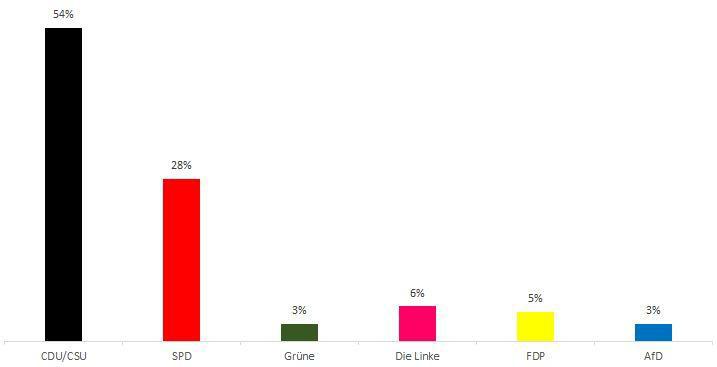 Celkem 24 milionů německých penzistů pomohlo k drtivému vítězství kancléřky Angely Merkelové. Podle volební účasti občanů nad 70 let je jasně vidět, že 54 % volilo CDU/CSU a 28% SPD. Podívejte se na graf zastoupení 70letých ve stranách.