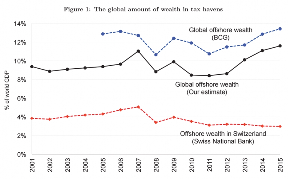 Podívejme se na příklad Ruska okolo citovaného roku 2012, které lze porovnat z českou realitou. V době působení prosovětského "činovníka" (latinsky agens) Klause vynikalo Rusko naprosto globálně v plundrování země. Nejprve se podívejme na normální neoliberální off-shore zlodějnu ve stejné době na Západě, kterou ukazuje tento graf.